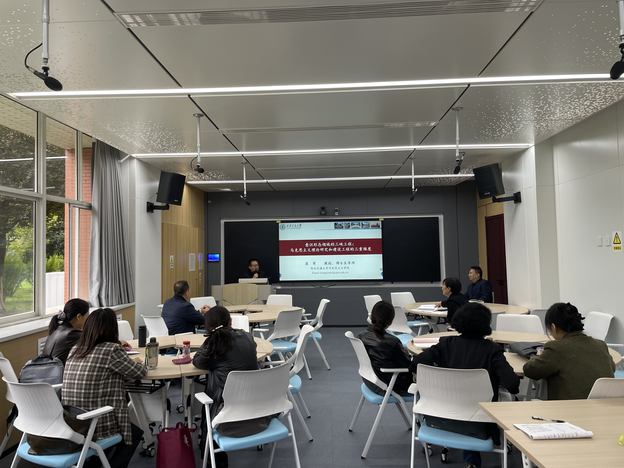 梁军教授从夯实马克思主义理论研究和建设工程的根基、建设具有强大凝聚力和引领力的社会主义意识形态、建好建强马克思主义理论人才队伍三重维度,结合个人丰富实践经验,系统讲授了马工程的战略地位,强调马工程对巩固党的执政基础、凝聚社会共识的极端重要性,引人深思。在互动环节中,与会教师积极提问,梁军教授逐一进行耐心解答,现场氛围热烈。