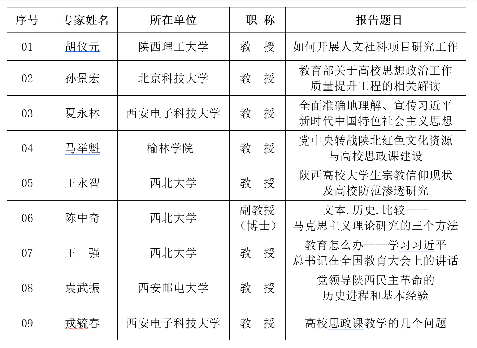 2018年思政论坛报告一览表