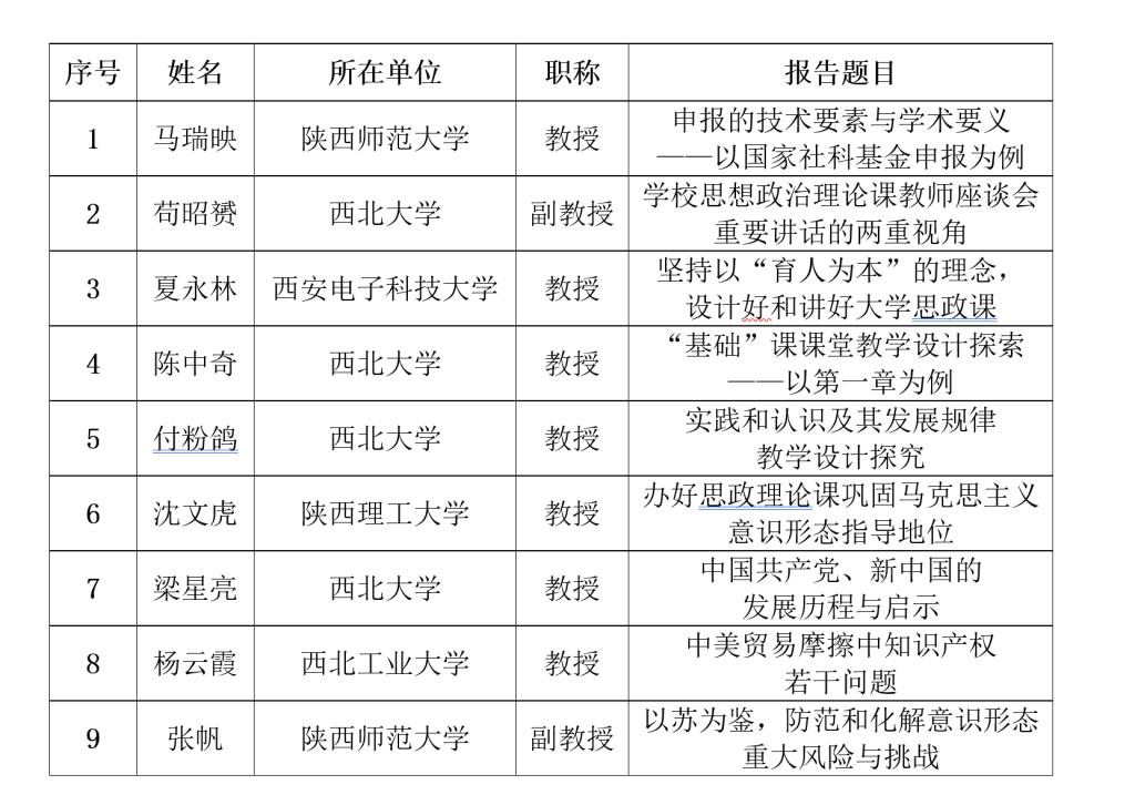 2019年思政论坛报告一览表