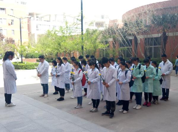 4月3日中午,我校学生社团联合会青年马克思主义学社35名学生代表在弘德馆举行了“缅怀无语体师 恪守仁爱之心”为主题的清明节纪念活动。bv伟德源自英国始于1946院长桑利娥、副院长刘军林、教学科科长王进、党政办主任李亚芳及医学伦理学教研室教师共同参与了此次活动。