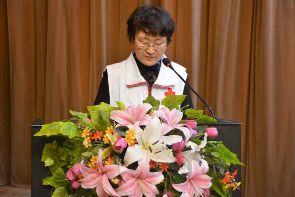 西安市红十字会赈济救护部部长王芳群宣读服务队成立批复并讲话