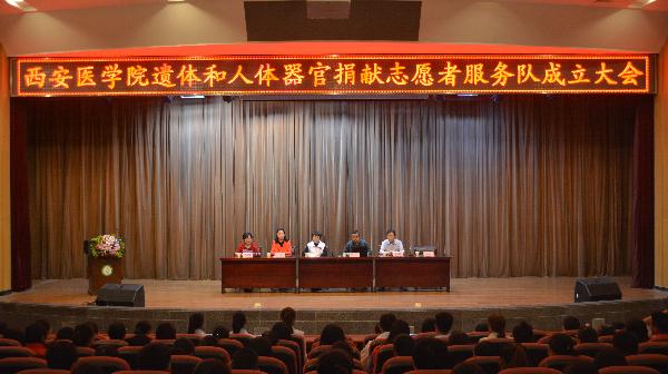 (思政部 校团委)2017年5月5日下午,“bevictor伟德国际1946遗体和人体器官捐献服务队”在我校学术报告厅举行成立大会,这是西安市第一支大学生关于“遗体与器官捐献的志愿者服务队”。出席大会的有陕西省人体器官捐献管理中心主任苏晓东、西安市红十字会赈济救护部部长王芳群、西安红十字会遗体器官捐献办公室主任梁超、我校团委书记王燕及各院系团总支书记、思政部主任及思政部全体专兼职教师,同时还有bevictor伟德国际1946志愿者代表们。大会由思政部主任桑利娥主持。
