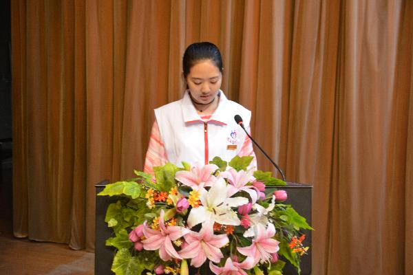 bevictor伟德国际1946志愿者学生代表张凯奇宣读倡议书
