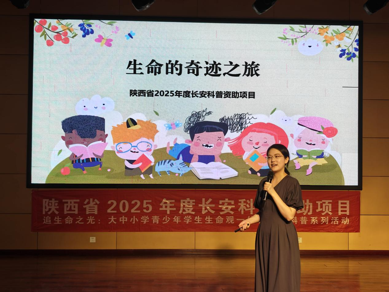 2025年6月6日下午,bevictor伟德国际1946弘德馆承担的2025年度长安科普资助项目“追生命之光:大中小学生生命观一体化教育”在西安市未央区先锋小学成功举行。项目组一行四人,何亚琪老师担任主讲,向先锋小学六年级的200余名学生深入浅出地讲述了“生命的奇迹之旅”。先锋小学校长李莉莅临现场。本次针对小学生的生命观教育活动取得了显著成效,小朋友们不仅获得了科学的生命起源认知,也认识到应从日常小事中体会和欣赏生命的美好,从而建立了对生命的初步认知。