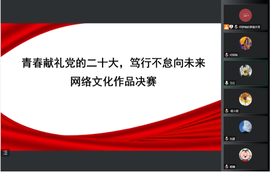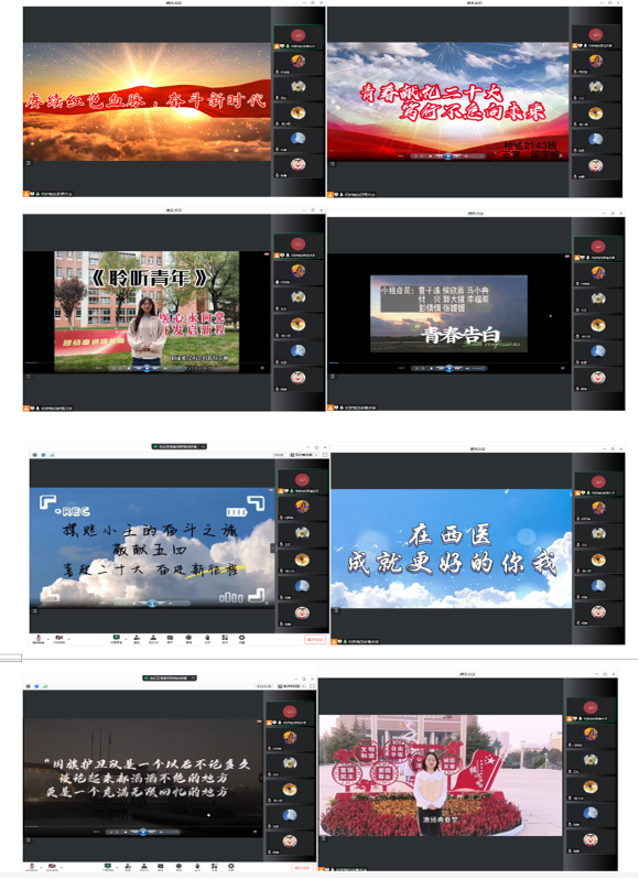 本次活动作品面向学校2021级全体在校学生征集,累计收到包括动漫、歌曲MV、微电影、动画、微视频等样式的246组作品,评选活动历经班级选拔赛、初赛、复赛三个阶段,最终10组作品脱颖而出进入决赛。决赛以播放录制视频的方式呈现,评委在线上进行评审。参赛作品紧扣“青春献礼党的二十大 笃行不怠向未来”主题,用激扬的语言、真挚的情感、鲜活的事例展现了新时代大学生对党的二十大精神的学思践悟,进一步坚定青年大学生担负起中华民族伟大复兴使命的信心和决心。