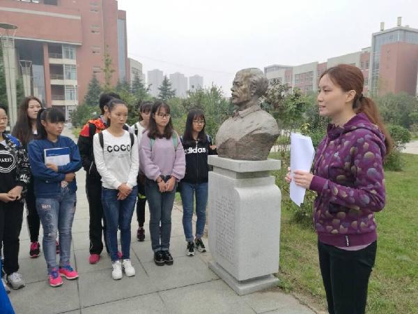 在图书馆致远广场的白求恩雕像前,李莎莎老师开展了一场别开生面的现场教学,与2016级新生一起分享了白求恩其人其事,学生们通过现场教学深刻体悟到白求恩崇高的国际共产主义精神,被他毫不利己、专门利人以及对工作的极端负责、对同志对人民的极端热忱、对技术的精益求精的精神所深深感动。李老师通过白求恩事迹介绍,阐释了毛泽东同志对白求恩的高度评价:他是一个高尚的人,一个纯粹的人,一个有道德的人,一个脱离了低级趣味的人,一个有益于人民的人。