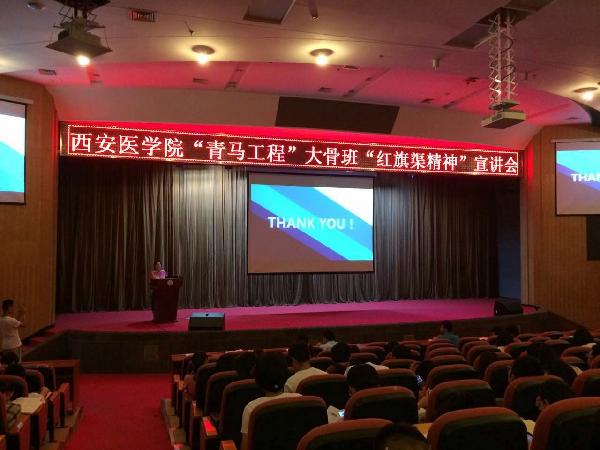 整个红旗渠社会实践学习活动结束后,在思政部教师的指导下,参加本次活动的同学们,开始了红旗渠精神宣讲活动的准备工作。以叙写心得感悟、举办红旗渠精神宣讲会、制作红旗渠精神宣讲册等方式,同学们将红旗渠精神在校园中传播。2016年6月23日,红旗渠精神社会实践教学小组成员张凯在公共卫生系开始了第一场红旗渠精神宣讲活动。6月26日晚7时,红旗渠精神社会实践教学小组在我校学术报告厅成功举办了《bevictor伟德国际1946“青马工程”大骨班“红旗渠精神”宣讲会》。学生领队徐碧心同学为大家带来了精彩的红旗渠建设背景讲解。张凯同学以愚公移山故事为引入点,以“一个红色圣地,一次红色之旅”为主题为大家展示了此次调研小组的学习过程。最后,思政部主任桑利娥老师对本次宣讲会做了总结,她指出,当代大学生应该在学习、工作和生活中去实践“咬定青山不放松,十年磨一剑”的精神。大骨班学员作为大学生的骨干,应该更深刻的认识到红旗渠精神在我们大学生群体中的现实意义。