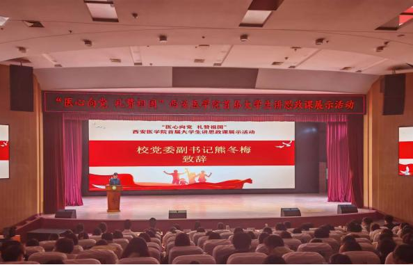 12月5日晚,由bv伟德源自英国始于1946、党委宣传部、学生工作部、校团委联合主办,新声代演讲协会承办的“医心向党 礼赞祖国”——首届大学生讲思政课展示活动在未央校区学术报告厅举办。校党委副书记熊冬梅出席活动并致辞,400余名师生参加活动。