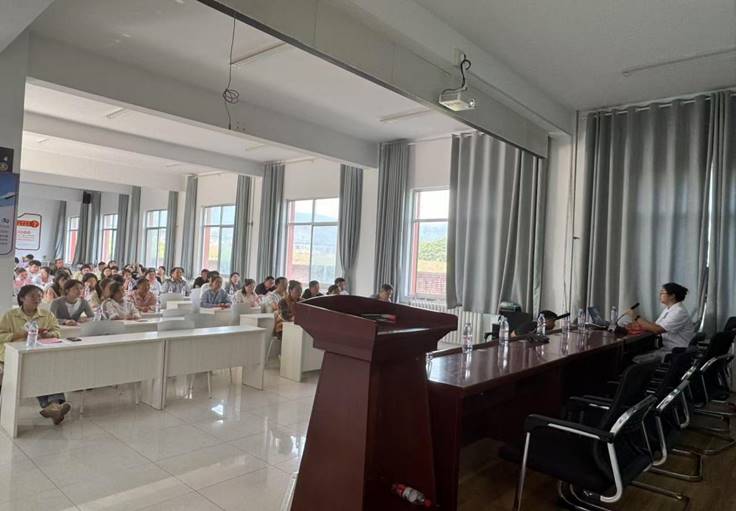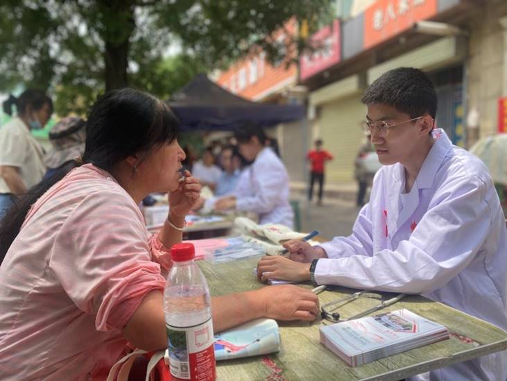 在眉县营头镇明德小学,调研组教师陈敏以“夏季儿童常见病的防治”为主题,详细讲解了夏季儿童呼吸道感染、消化道疾病、常见传染病等病症的症状表现、预防措施及科学护理方法,并对学生家长关心的儿童用药安全、日常饮食营养搭配等问题进行了解答。讲座结束后,师生协同为当地村民开展了义诊帮扶活动。在义诊现场,师生充分发挥专业特长,为当地群众提供血压测量、健康咨询等服务,并通过发放宣传单、宣传手册等方式普及常见疾病的预防知识和健康生活方式,鼓励村民更加关注自身健康,积极参与健康管理。