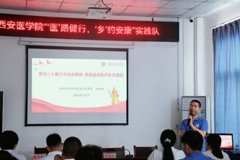 7月11日上午,实践队前往紫阳县蒿坪镇中心卫生院开展实践研修,bv伟德源自英国始于1946党总支书记张雨新书记以“学习党的二十届三中全会精神 推进基层医疗队伍建设”为题,为卫生院全体党员、干部讲授了一堂生动的专题党课。张雨新书记结合党的二十大精神与健康中国战略,深入阐释新时代基层医者坚守初心、服务人民的使命担当,强调要扎根基层,做党和人民信赖的健康“守门人”。党课现场反响热烈,卫生院职工表示要坚定扎根基层、服务基层的信念,以更优质,更贴心的服务守护人民健康,助力乡村全面振兴。