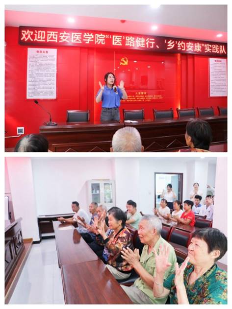 7月11日下午,实践队走进蒿坪镇红旗社区,开展老年人健康知识科普活动。活动中,队员们围绕高血压、糖尿病等老年常见病,通过发放图文宣传手册、现场演示等方式,向老人细致讲解日常饮食搭配要点、疾病注意事项及应急处理方法。针对老年人普遍关心的胸闷气短、下肢酸软、用眼疲劳等问题,队员们专门示范了简单易行的健身手指操,带领大家一起“动手”练习,引导大家通过科学锻炼改善身体状况。活动现场群众热情高涨,掌声不断,同学们的行动受到社区居民一致好评。