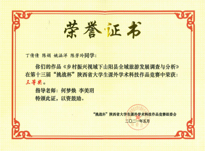 2021年5月1日—第十三届“挑战杯”省级铜奖—荣誉证书