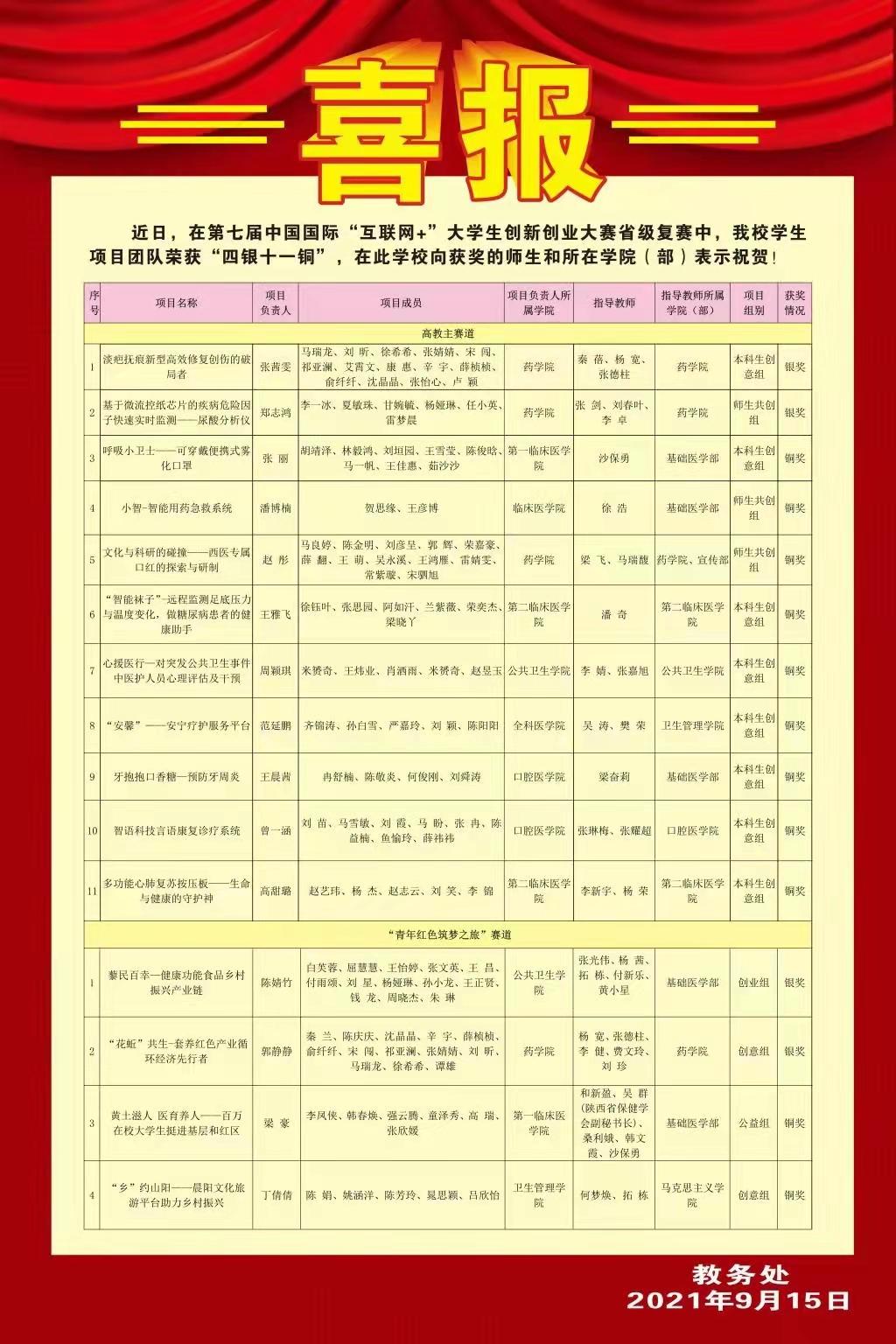 2021年9月1日—第七届中国互联网+大学生创新创业大赛陕西省赛区铜奖—陕西省教育厅